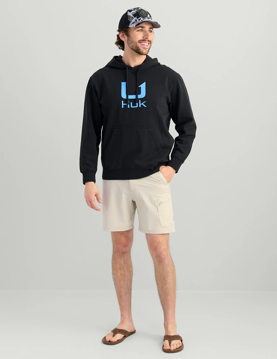 Our Huk Barb U Cotton Fleece Hoodie is crafted with a soft cotton blend that will keep you cozy all season long. It has a hood and a kangaroo pocket for extra warmth.