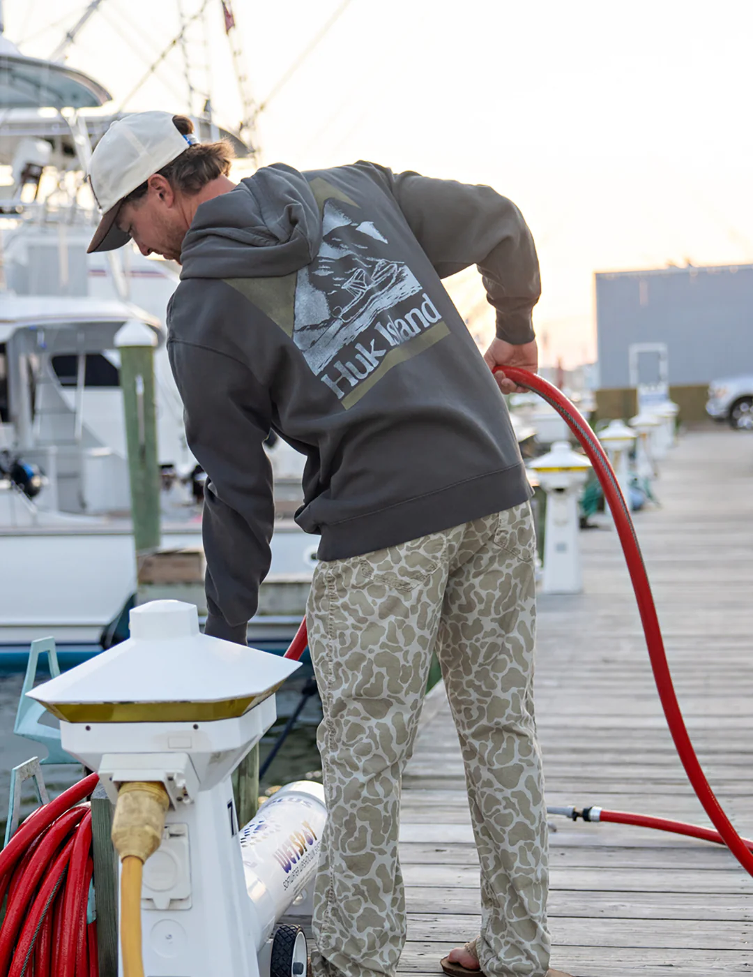 Our Huk Island Cotton Fleece Hoodie is crafted with a soft cotton blend that will keep you cozy all season long. It has a hood and a kangaroo pocket for extra warmth.
